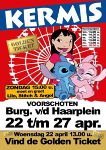 Woensdag 22 April vanaf 13:00 begint de zoektocht naar de Golden Ticket.  Er zijn 3 Golden Tickets verstopt op het kermisterrein. Dit kan bij een zaak/attractie zijn of op het kermisterrein zelf. Er mag niet worden geklommen of onder de attractie worden gezocht of in de attractie/zaak worden gezocht. De Golden Tickets zijn altijd vanaf buiten af zichtbaar. Op het moment dat jij een Golden Ticket hebt gevonden mag deze worden ingeleverd bij de Oliebollenkraam. Hier krijg je de prijs en verdere informatie.